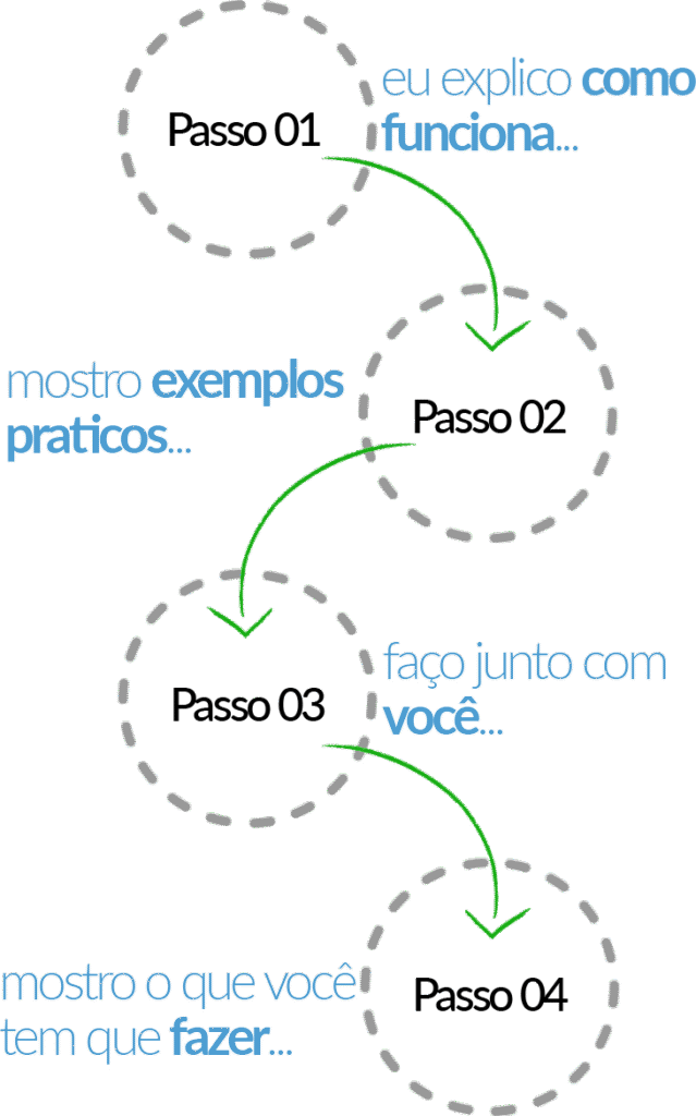 DIFERENCIAL EXTRA: Criei um passo a passo prático (aplicação 100% prática) totalmente em vídeo aulas curtas de todo o método apresentado, ou seja, um resumo de tudo o que você tem que fazer para ver os resultados.